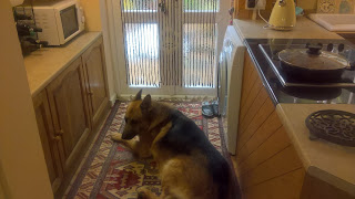 The Domestic Goddess has excelled herself, even though Creative Clara says so herself. All week she has been on a project to surprise Calum when he gets home tonight. It did occur to Clever Bird that perhaps Clara has built this up a little too much. Many would think that it's not much of a surprise really. But you need to understand the terrible influence that Hormonal Hannah has been having on the gang recently. Then imagine what a perfect excuse this is for The Domestic Goddess to say, "Nope, Baggy feels terrible, the house can cope". Frequently. And it's a lie - it can't cope! It's quite a big house compared to what Baggy is used to, so The Goddess needs to at least try to keep on top of it. Having two cats, who've now both decided that outdoor ablutions are just not normal, and who come in from outside to use the litter tray, before going back out again - having thrown the litter across the kitchen. And a very large mutt who slops water all over the floor, and seems to like to do the same with his food. And a newly gravelled patio that seems determined to relocate itself in the house. And a Goddess who just can't be bothered to move a certain number one furry's ever increasing bits, off any available surface. Makes it a challenge to keep clean. Even Baggy's sister Debby (who loves cleaning), started to tackle it before giving up in despair. Her words, "Why don't you sort it out so that you can get to things? I could organise this in a day. We'll do it next time I'm up".