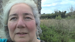 Yesterday, whilst Number One Furry went and did the shopping (the man is an angel!), Furry Mama was at the beach with Pepper Pooch. He dropped them off on his way to the supermarket, as Baggy is struggling to drive at the moment. Creative Clara wanted to ceramic hunt too. Hormonal Hannah had to bring Bear along, as she needs him. So, in Baggy's little bag of 'stuff' were: Bear, sunglasses, glasses, a fiver, doggy doo-doo bags, a ceramics collecting pot, Pepper's ball thrower and tennis ball, spare tennis ball, spare tennis ball, (no that's not a mistake, he loses a lot), hanky and lots of sand - clearly surplus to requirements, but there nonetheless, from previous outings. The bag was heavy! Baggy put her big mad cardi. on and off they set. Far from being the cold day that Freda Fretter had thought it was, it was actually very warm, so it wasn't too long before Baggy was boiling hot. Clever Bird had forgotten just how far it is before you even get to the beach - probably a fifteen minute walk - so the pooch was hot! As they were almost there, he shot off up a side path. Furry Mama called him. Nothing. So she toddled off after him - to the edge of the cliff to the beach!
